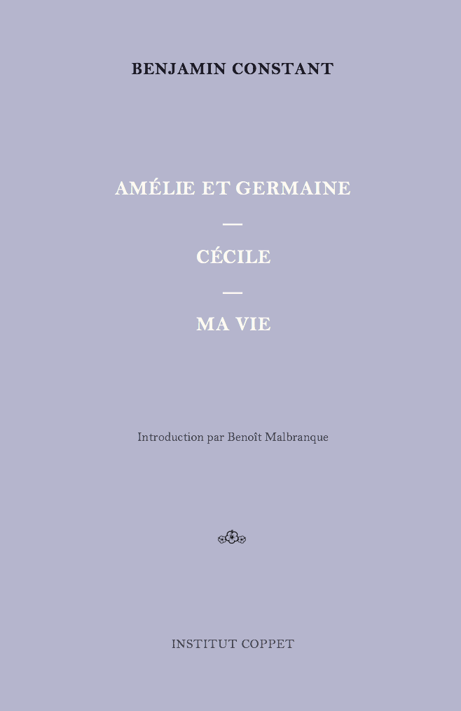 Dans trois textes autobiographiques successifs, Benjamin Constant a retracé les étapes de sa vie agitée, pour étudier les motifs qui lui firent prendre des partis souvent bizarres et contradictoires. Dans Germaine et Amélie (1803), d’abord, il fait état de ses tiraillements intérieurs, dans le choix d’une épouse. Cécile (1810) raconte la longue aventure qui précéda son mariage avec Charlotte de Hardenberg. Enfin, Ma Vie (ou le Carnet rouge) (1811) raconte quelques épisodes de sa jeunesse orageuse. — La qualité du style, la richesse des images, l’intérêt des faits, ont valu à ces courts écrits une notoriété littéraire qui ne s’est pas encore démentie.