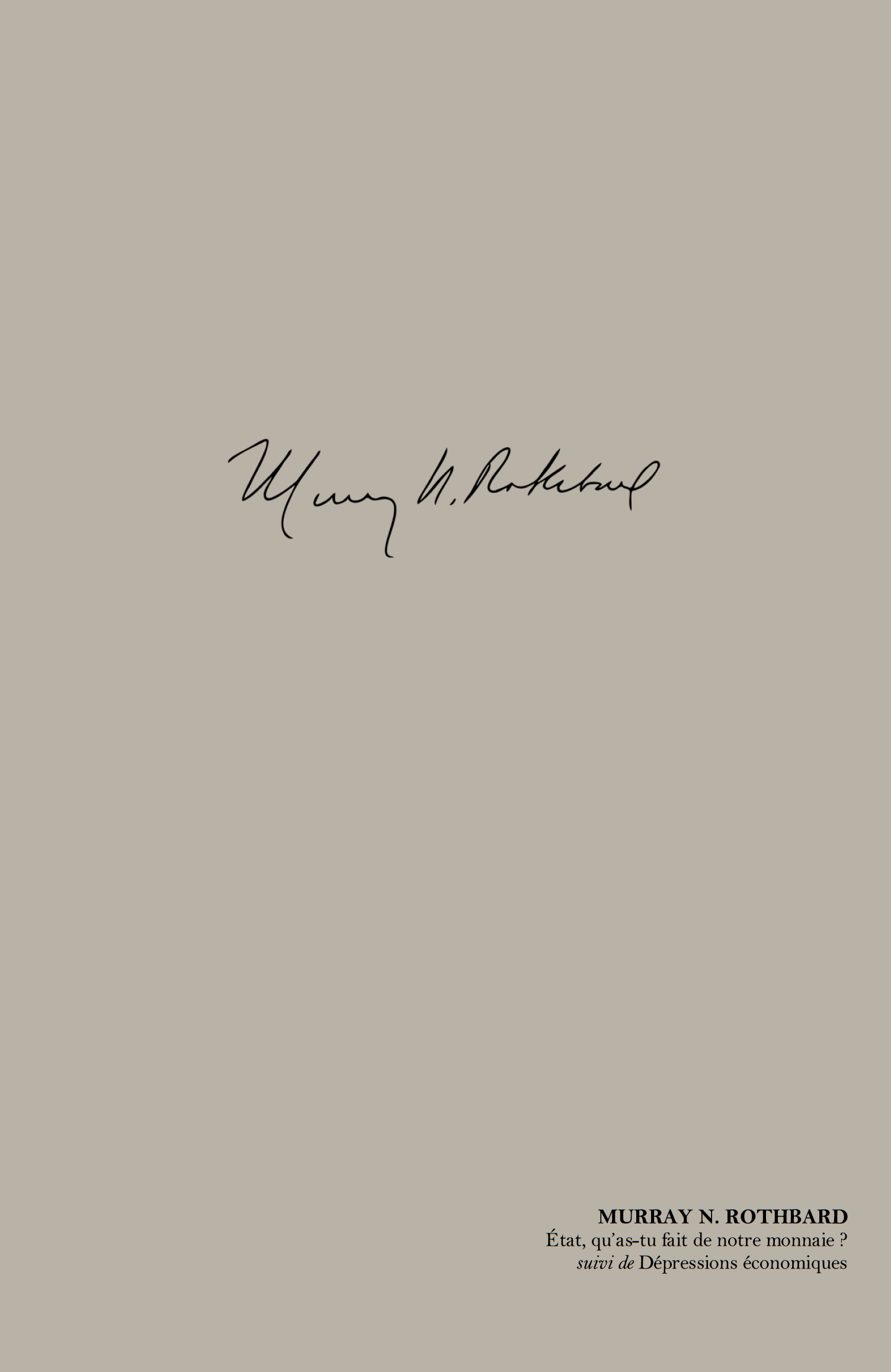 État, qu’as-tu fait de notre monnaie ? (réédition, traduction par Stéphane Couvreur pour l’Institut Coppet ; avec un épilogue de Jörg Guido Hülsmann) — suivi de Dépressions économiques (réédition, traduction par Marc Lassort pour l’Institut Coppet).