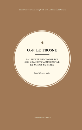 Entre 1765 et 1768, après d’autres auteurs à la notoriété fugitive, le physiocrate G.-F. Le Trosne entra lui aussi dans l’arène, pour défendre la liberté du commerce des grains, point central du programme économique du groupe de Quesnay. Il le fit avec fermeté, demandant toujours une liberté « pleine et entière », et en se fondant sur des principes que ses successeurs, immédiats comme Adam Smith, ou plus lointains comme F. A. Hayek, ont reproduits. Son zèle lui dicta même de nouveaux modes de discours, comme cette « Requête des rouliers d’Orléans », qui rappelle furieusement la « Pétition des fabricants de chandelle » de Frédéric Bastiat.